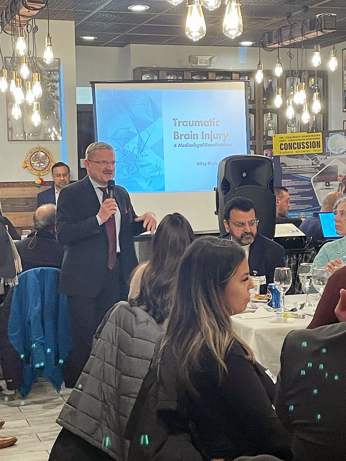 Dr. Nilay Shah, affiliated with BonLeven Health Care in Maywood, NJ, is a highly respected neurologist with 26 years of specialized experience. BonLeven Healthcare is dedicated to providing patient-focused care for neurological disorders and supporting patients and their caregivers. Employing the latest evidence-based diagnostics and treatments, BonLeven delivers advanced care for conditions such as headaches, epilepsy, multiple sclerosis, neuropathy, dementia, Parkinson's disease, and other neurological ailments. Dr. Shah's insightful presentation addressed "Traumatic Brain Injury and Medicolegal Ramifications," emphasizing the importance of detailed neurological evaluations for TBI patients. He highlighted the pivotal role of EEG, especially the extended 72-hour ambulatory EEG, as a critical diagnostic tool in identifying residual seizure activity associated with post-concussion syndrome.
